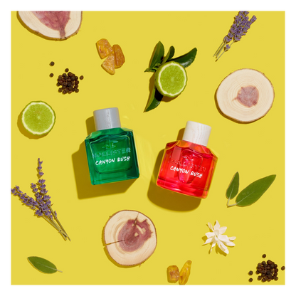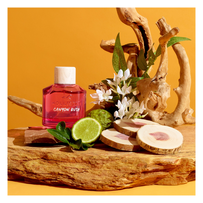 Opening with a tart burst of fruits, Canyon Rush is fresh and juicy from the get go. It has a joyful sweetness that doesn't feel overpowering. The bergamot and apple notes linger throughout the scent to add a fruity flare as they welcome in the floral heart. Jasmine adds a sensuous warmth whilst violet adds a touch of powderiness that is both light and comforting. The base notes add depth as cosy, warm amber and cedarwood create a woody dry down without overpowering the sparkling sweet fruity florals that lie before it.