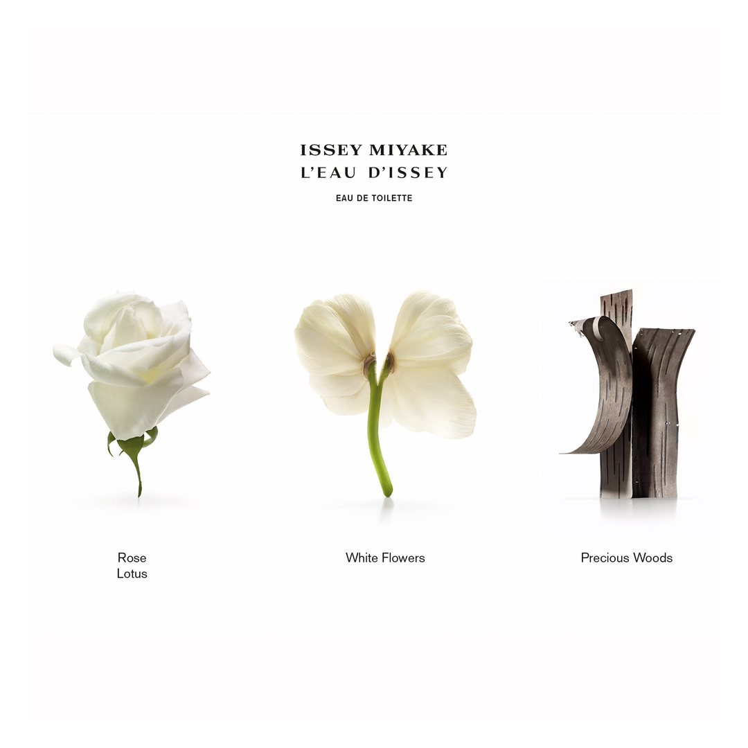 Issey Miyake L'Eau d'Issey Eau de Toilette Spray: Alcohol, Parfum (Fragrance), Aqua (Water), Hydroxycitronellal, Linalool, Citronellol, Eugenol, Geraniol, Benzyl Benzoate, Farnesol, Limonene, Citral Body Lotion: Aqua (Water), Butylene Glycol, Cetearyl Isononanoate, Dimethicone, Glycerin, Parfum (Fragrance), Xylitol, Glyceryl Stearate.