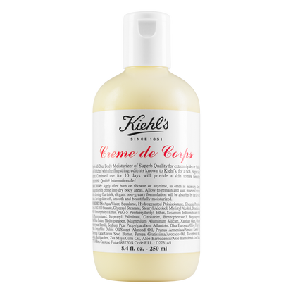 One of Kiehl's best-selling body moisturisers, Creme de Corps All-Over Body Moisturiser is loved for its thick creme feel and dewy (but never greasy) finish. Specially formulated to improve skin texture, the nourishing cream contains a high concentration of shea butter, avocado oil and squalane, all known for their skin-nurturing benefits.