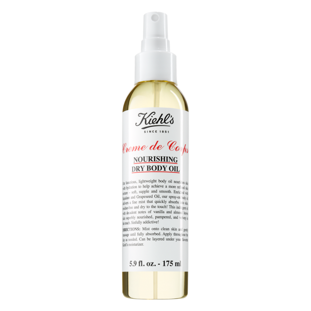 Pamper skin all over with the Kiehl's Creme de Corps Nourishing Dry Body Oil, a lightweight spray-on body oil for all skin types.