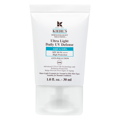 Daily sunscreen you can rely on, no matter your skin type! Introducing Kiehl's Ultra Light Daily UV Defense Aqua Gel SPF50, a lightweight formula that will offer high UV protection as well as shielding the complexion from everyday pollution.