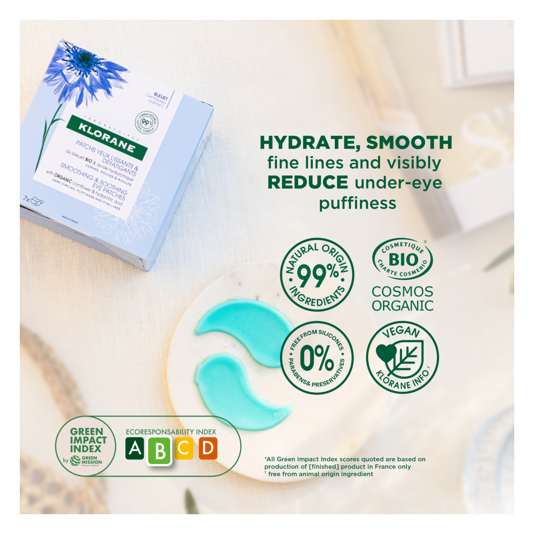 "Klorane Organic Cornflower Smoothing and Soothing Eye Patches instantly refresh and depuff tired eyes with soothing cornflower and hydrating hyaluronic acid." - Melisa, Escentual Beauty Team.