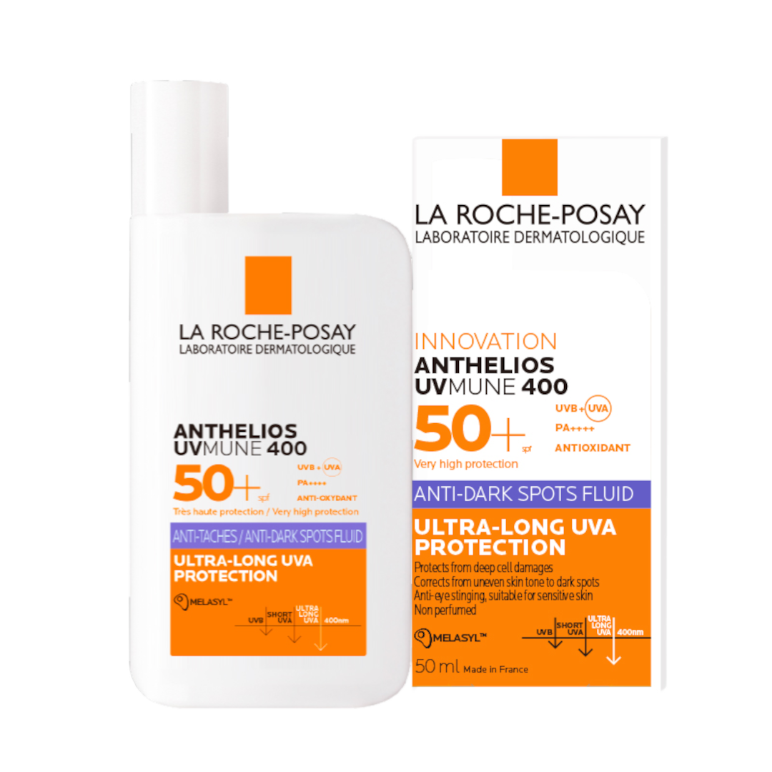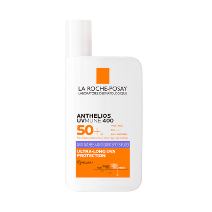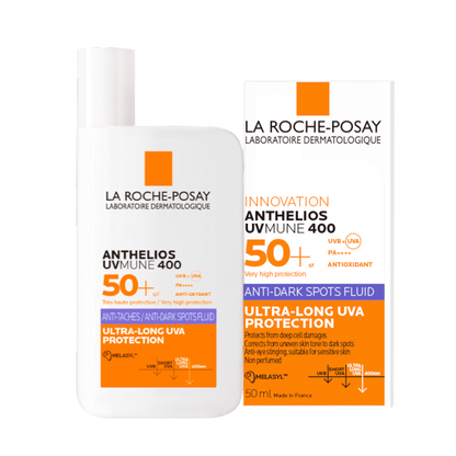A daily facial SPF50+ fluid suitable for all skin types to prevent sun-induced dark spots and hyperpigmentation.