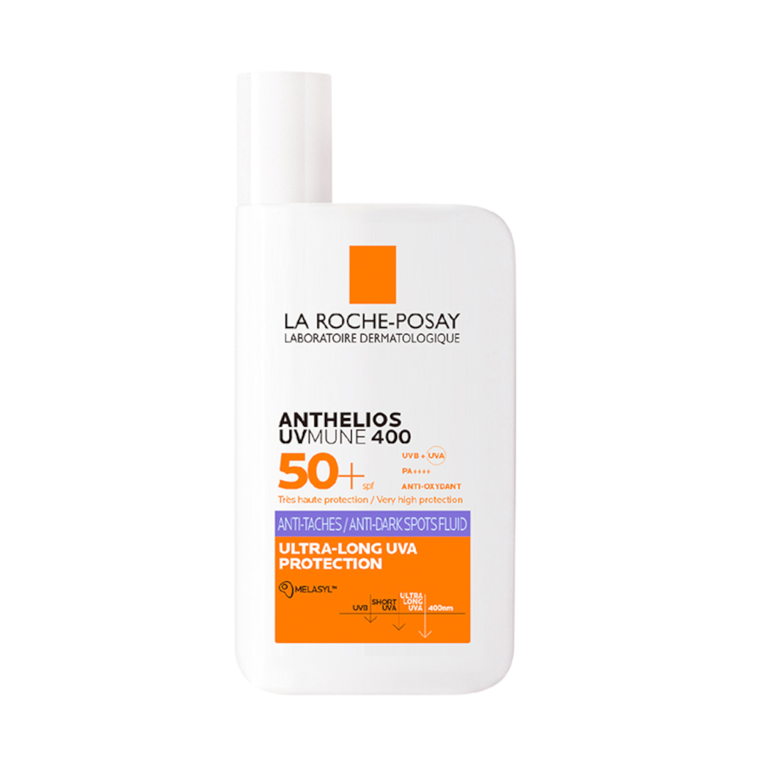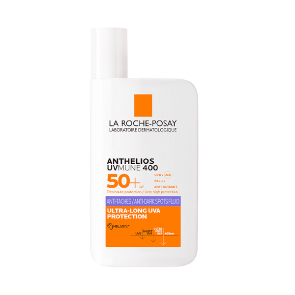A daily facial SPF50+ fluid suitable for all skin types to prevent sun-induced dark spots and hyperpigmentation.