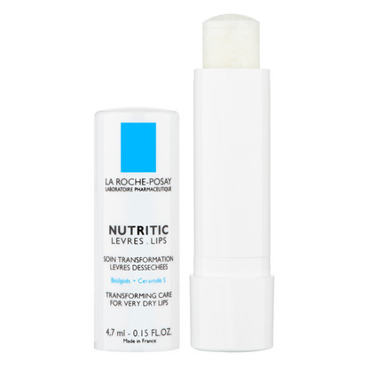 Transform your dry, cracked lips with the La Roche-Posay Nutritic Lips balm, a caring stick that tackles the four signs of sensitive lips.