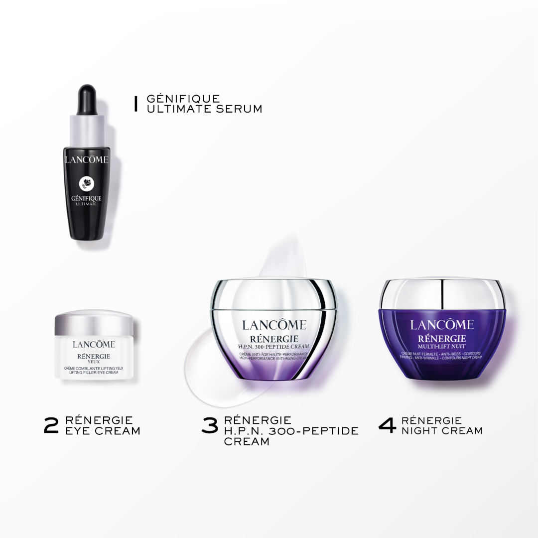 STEP 2: Rénergie Eye Cream 5ml The high-performance anti-aging of Rénergie, formulated with the delicate skin of the eye contour. A unique concentration of next generation Hyaluronic Acid, selected for its smaller molecular size, and the Peptides contained in our French Linseed extract. See an instantly refreshed eye contour, and with regular use, reduced wrinkles, lifted eyelids and a long-term improvement of dark circles.
