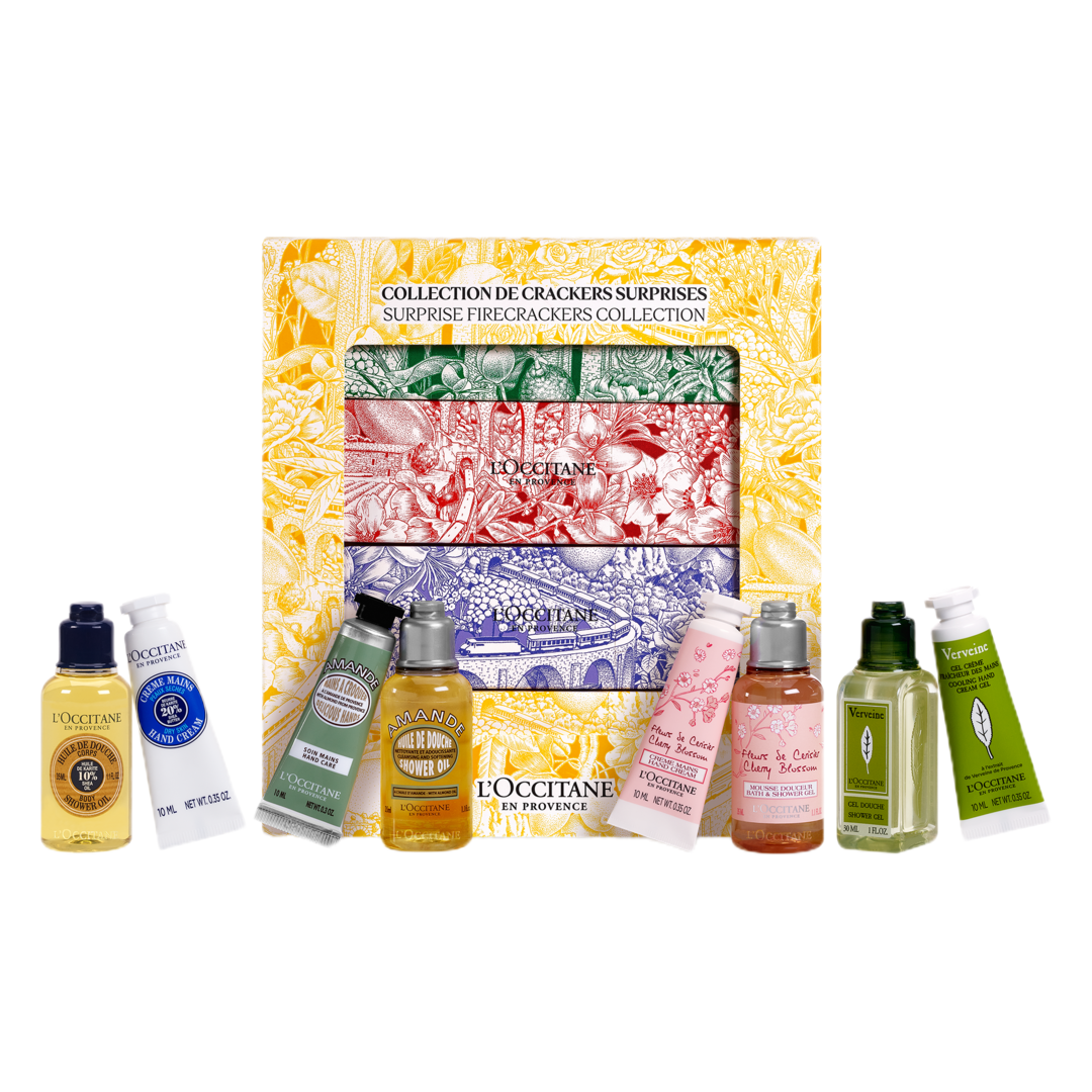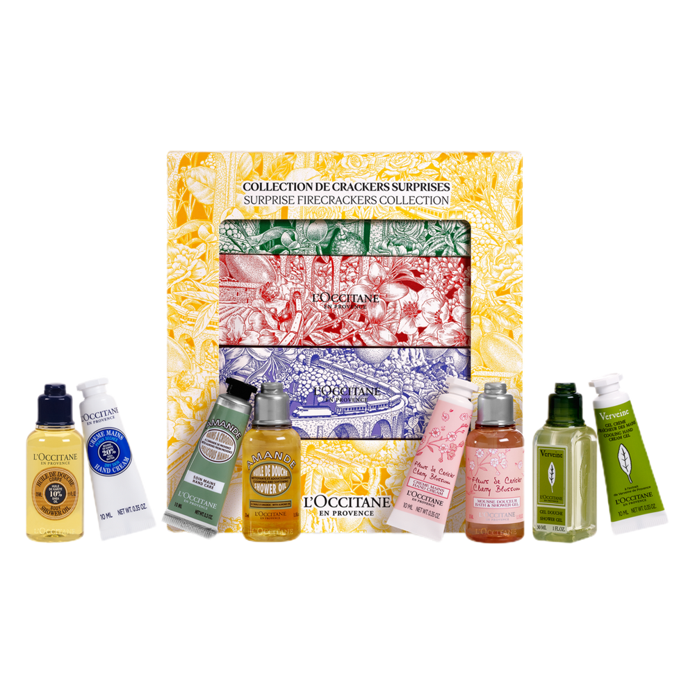 The perfect gift to share with friends and family, L'OCCITANE's Festive Crackers Collection feature travel sized shower gels and hand creams in four of our most loved scents: Cherry Blossom, Almond, Shea Butter and Verbena.