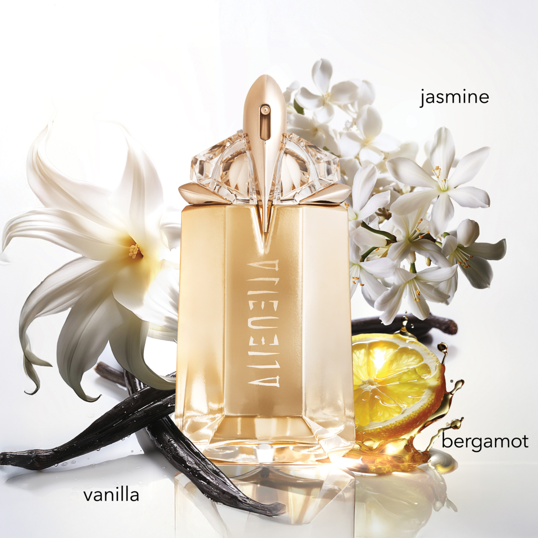 Luminous and mesmerising, the much-loved Alien Goddess fragrance is a blend of floral, warm and woody tones. The EDP opens with a sparkling and radiant nod to the Alien Goddess through a blend of Italian bergamot and refreshing coconut water. The heart blooms with opulent white jasmine flowers, which are nuanced by hazy heliotrope, before the scent warms into a seductive bourbon vanilla base that's perfectly balanced by comforting cashmeran.