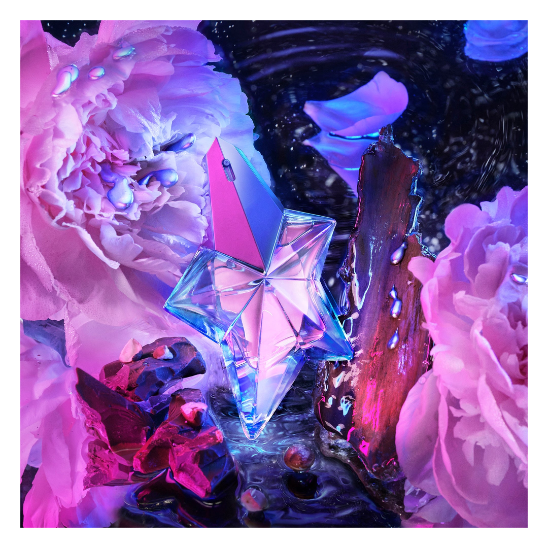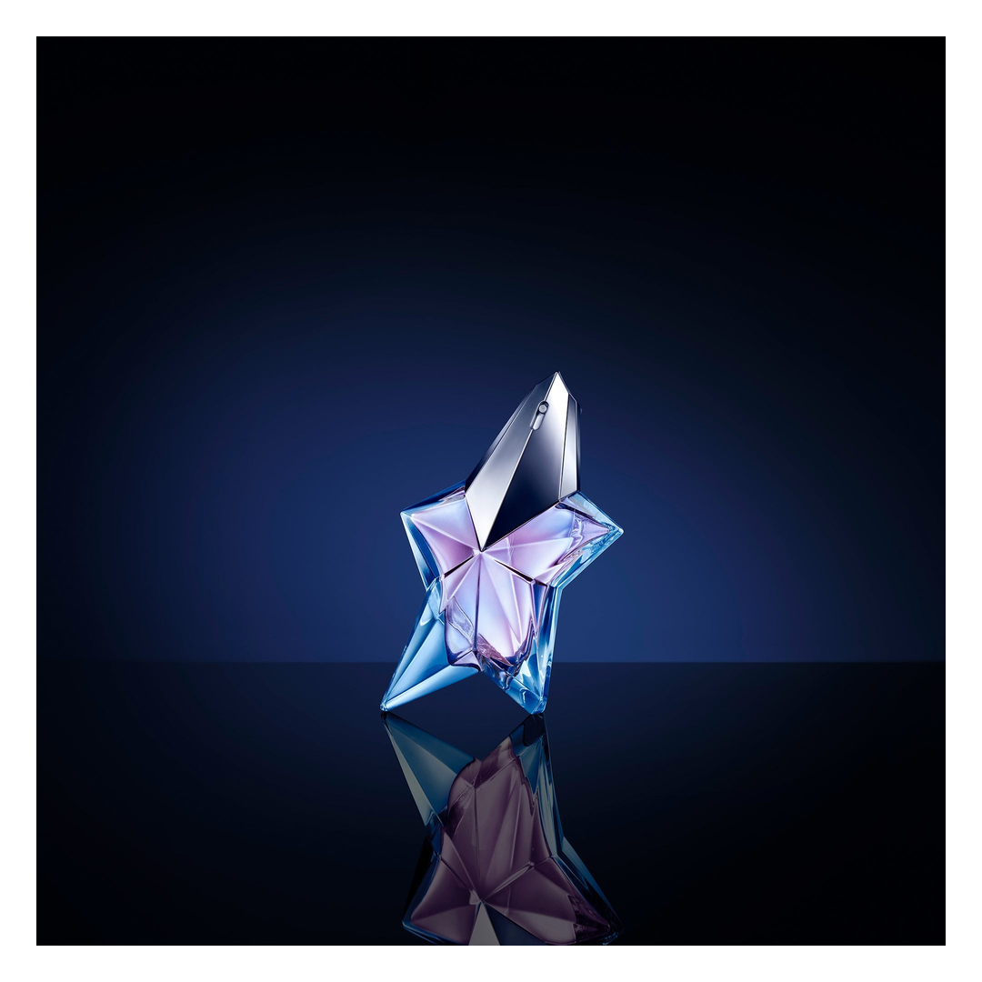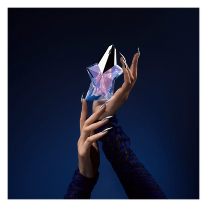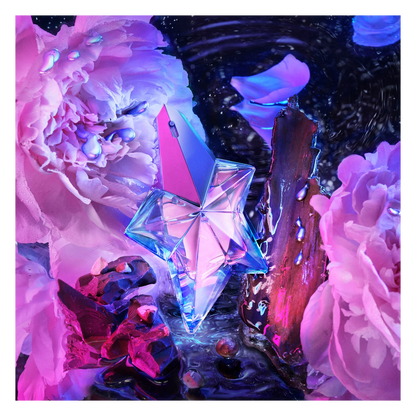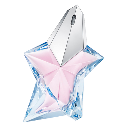 Angel Eau de Toilette opens with an immediate hit of mandarin that is quickly softened with a subtle note of peony that fuses in the heart with creamy praline, berries and apple oil. This dreamy combination is completed with a sensual and empowering base of patchouli and warm blond wood and conjures up the idea of silkiness and subtle seduction.