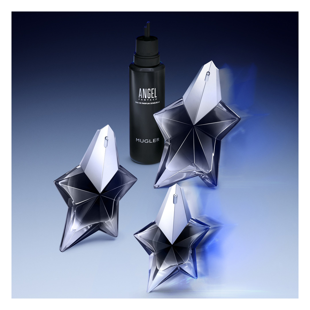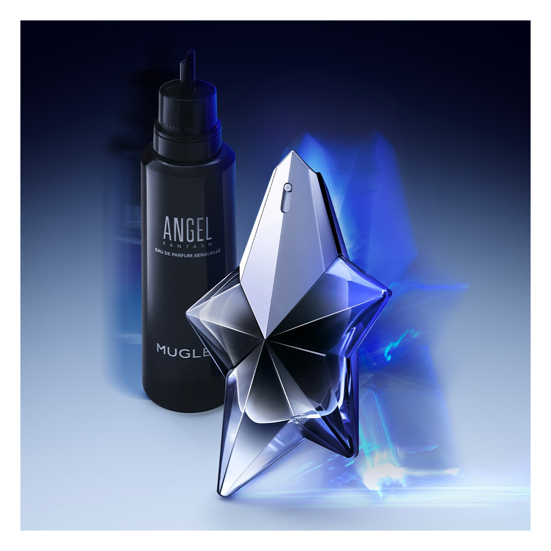 Angel eau de parfum's sensual voluptuous facet is stretched and amplified in Angel Fantasm. A fierce skin addiction captured in a fascinating black star bottle, a new shine in Angel's galaxy.