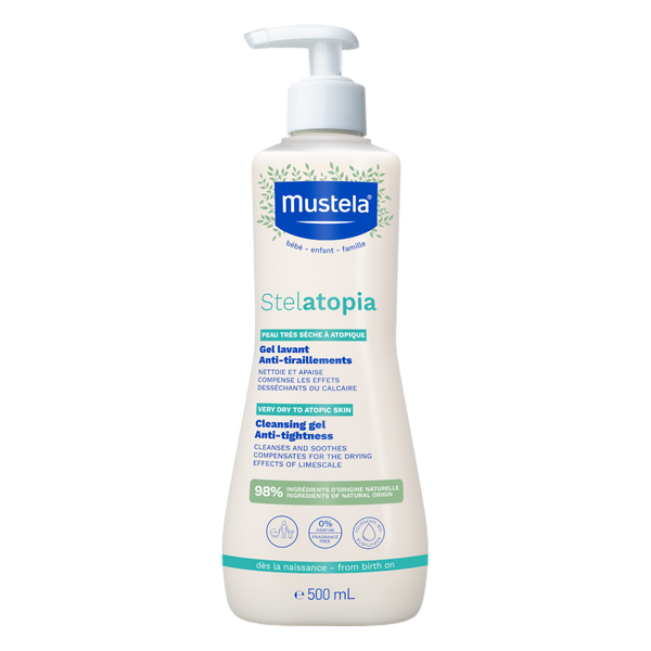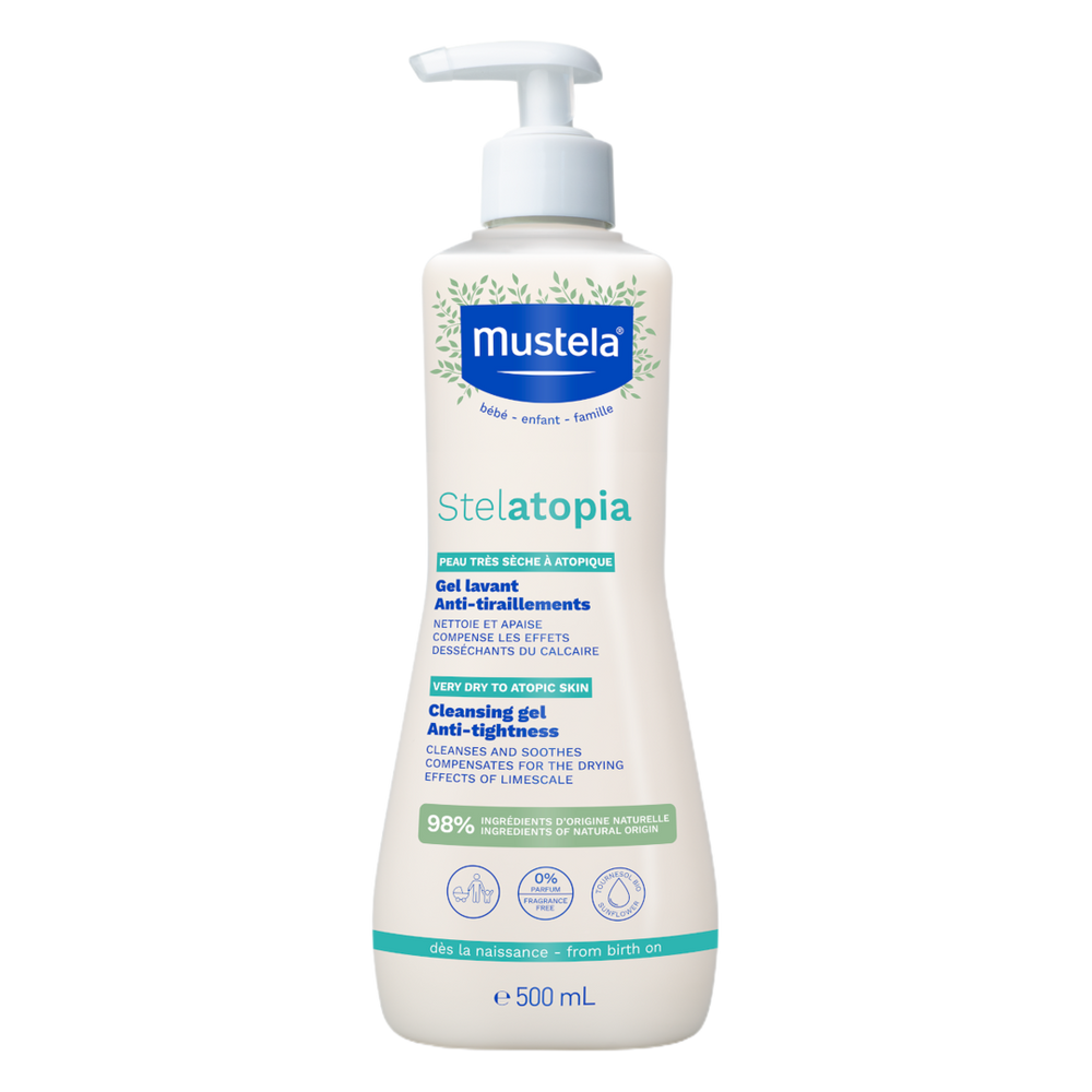 Cleanse and protect your baby's atopic skin with the Mustela Stelatopia Cleansing Gel, a delicate face and body wash which can be used from birth.