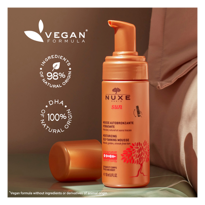 98% natural-origin, this self-tanning mousse that creates a golden tan from the 1st application. Light texture enriched with hyaluronic acid.