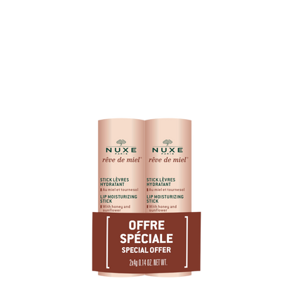 This duo includes 2 Lip Moisturising Sticks, with Honey and Organic Sunflower Oil.