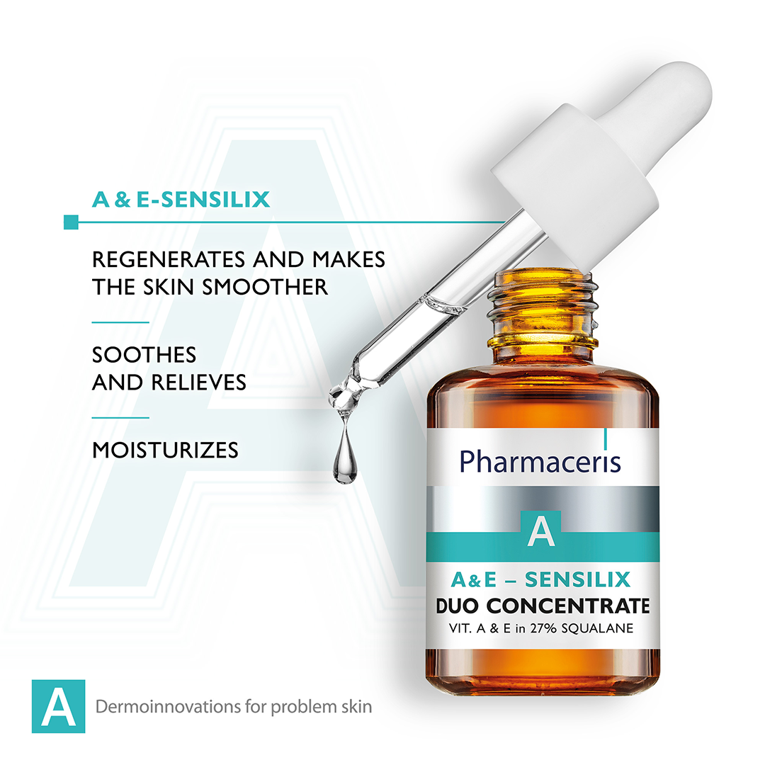 ''The Pharmaceris A A&E - Sensilix Duo Concentrate serum hydrates, protects and regenerates skin in one step thanks to a powerful combination of vitamin A and E and squalane, all infused into one lightweight serum!'' - Keavy, Escentual Beauty Team.