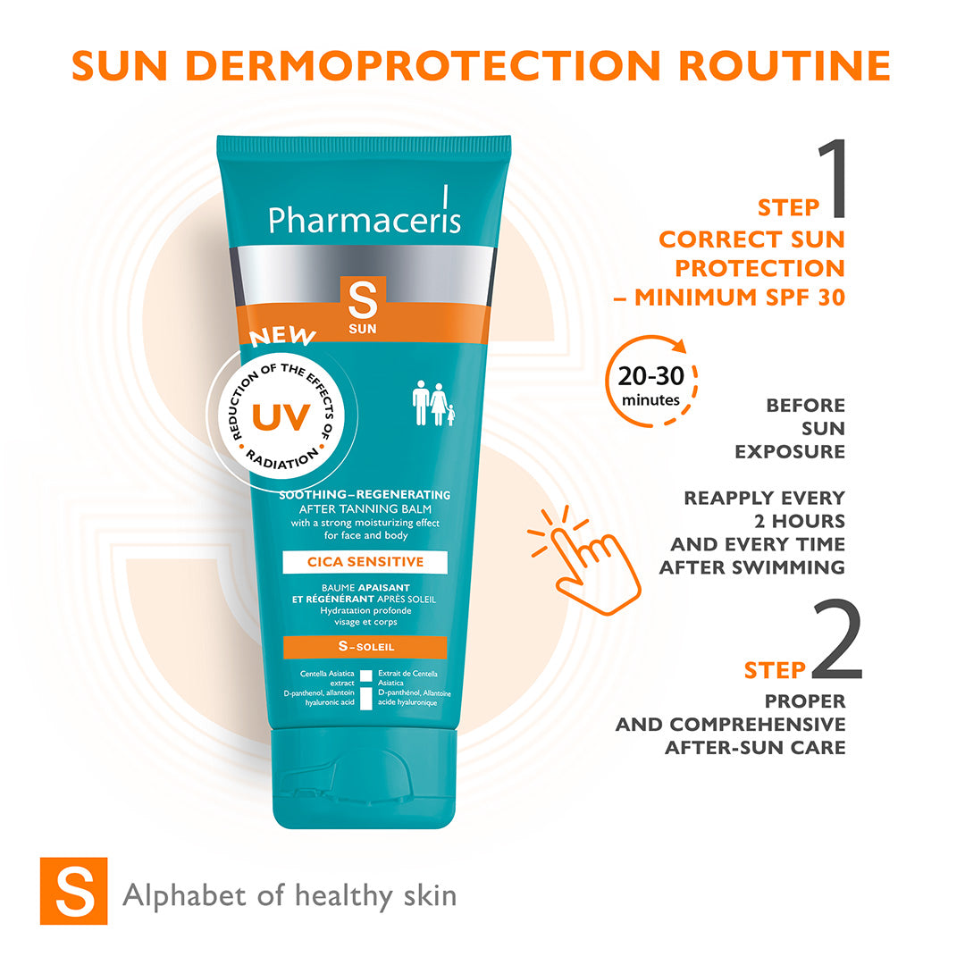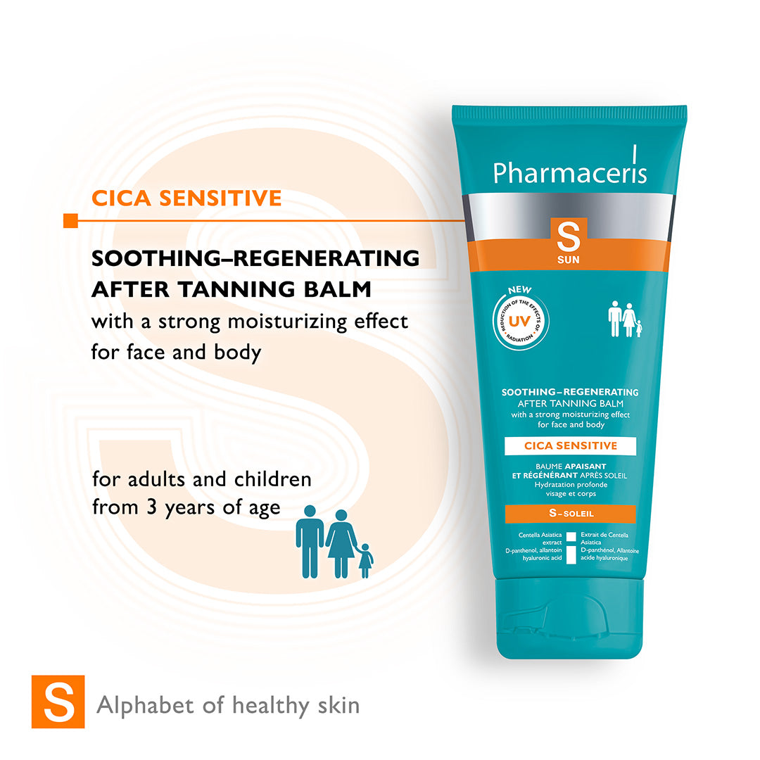 Formulated for everyday use, the lotion is recommended for dry skin with signs of general discomfort such as burning, red and dry skin caused by sunbathing or excessive sun exposure. For face and body. Approved for use in adults and children from 3 years of age. The balm intensively regenerates and moisturises the skin, relieving redness, irritation and discomfort such as burning, itching and hot skin sensation caused by sunbathing or excessive sun exposure.
