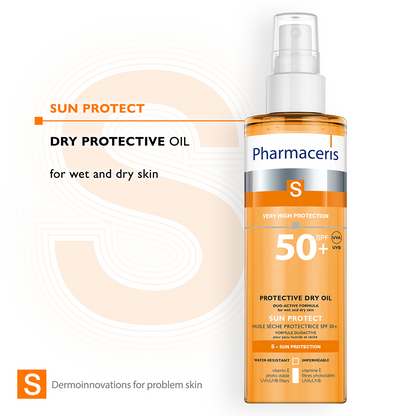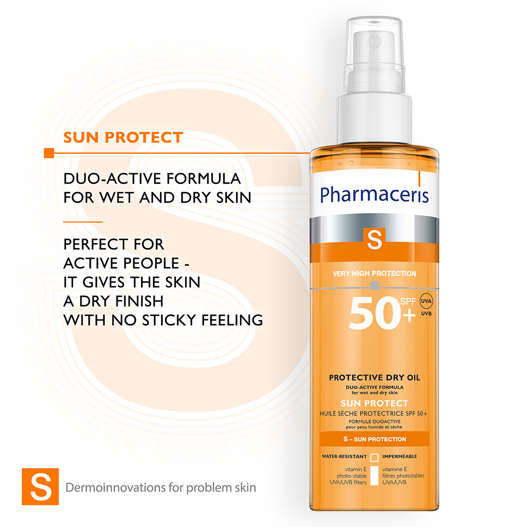 For such a lightweight oil, you might not expect the Pharmaceris S Protective Dry Oil to be so powerful, but it provides 98% UV protection! The dry oil offers broad-spectrum SPF 50+ defence using photostable UVA and UVB filters, which absorb sun rays to prevent their damaging effect on the skin and minimise sunburn and sun-induced discolouration. Skin is shielded against intense solar radiation as well as harmful environmental aggressors and free radicals, thanks to the inclusion of vitamin E. This youth-recapturing vitamin has a strong anti-oxidising effect, and also strengthens the lipid barrier of the skin while boosting the regeneration of cells. The oil fends off dryness to leave skin feeling smooth and soothed, with a lustrous satin finish.