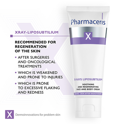 Pharmaceris X X-Rays Liposubtilium Soothing and Regenerating Face and Body Cream is a specialist product recommended for use on dry skin following radiotherapy treatment.