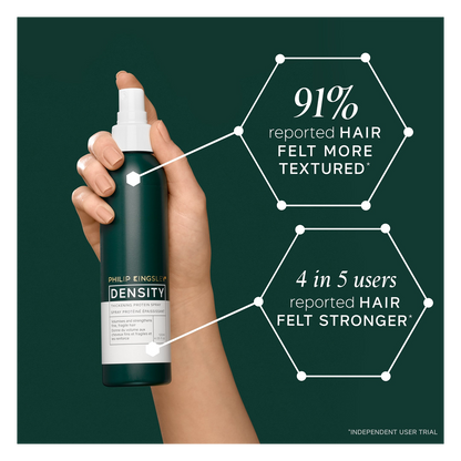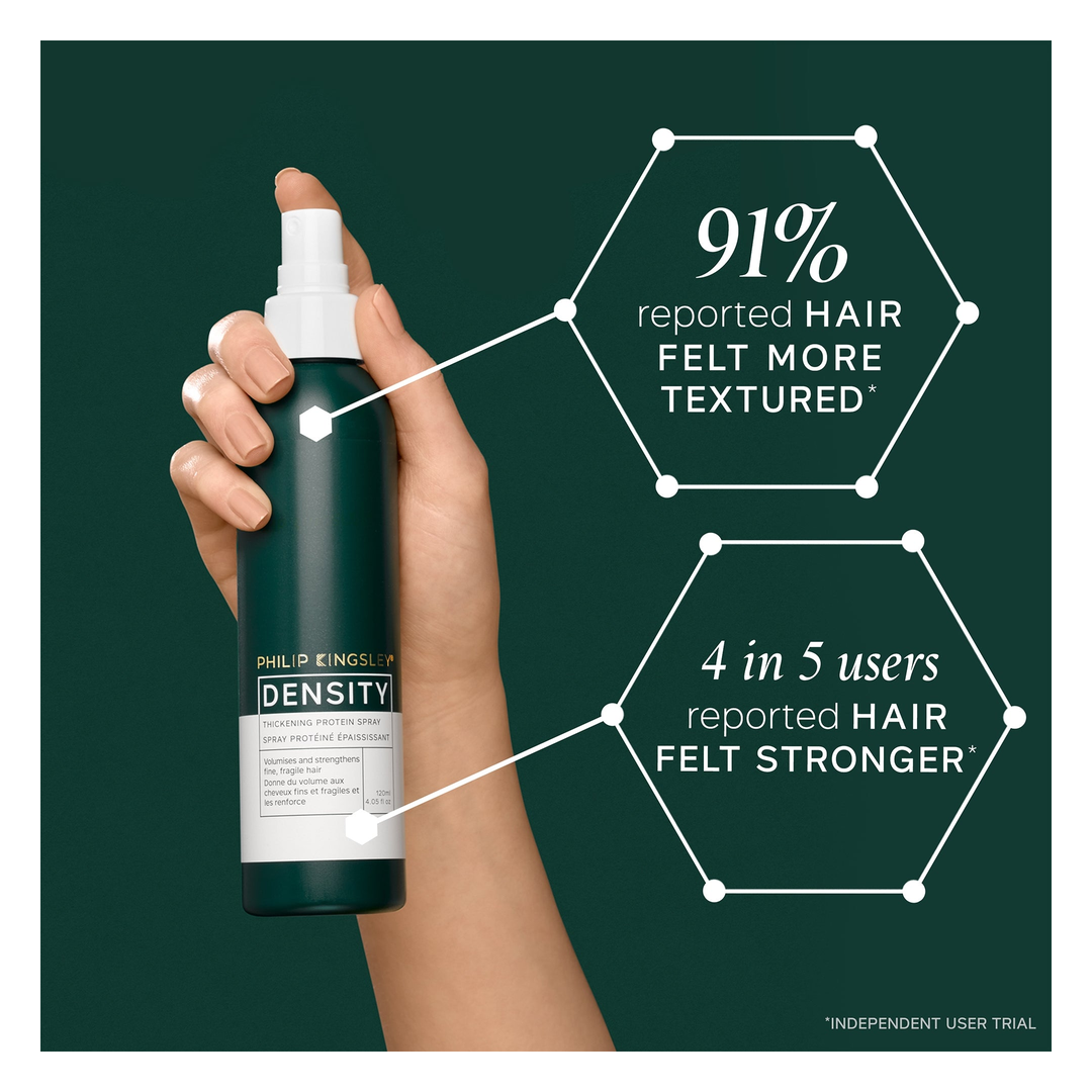 "Achieve lustrous, shiny locks with the Philip Kingsley Density Thickening Protein Spray, a synergy between efficient styling and fortifying hair proteins." - Darcey, Escentual Beauty Team.