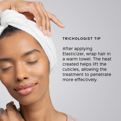 Apply a small amount of product to begin and add more if needed. If you notice the formula sinking in and disappearing, then apply more until your hair feels slippery. The drier your hair is, the more Elasticizer it'll need.