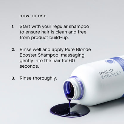 Use once a week. Apply after using your regular shampoo to ensure your hair is clean of product build-up. Rinse well before applying the Pure Blonde Booster Colour Corrector, and massage gently into the hair for 60 seconds. Rinse thoroughly with water. Test a small section of hair before use.