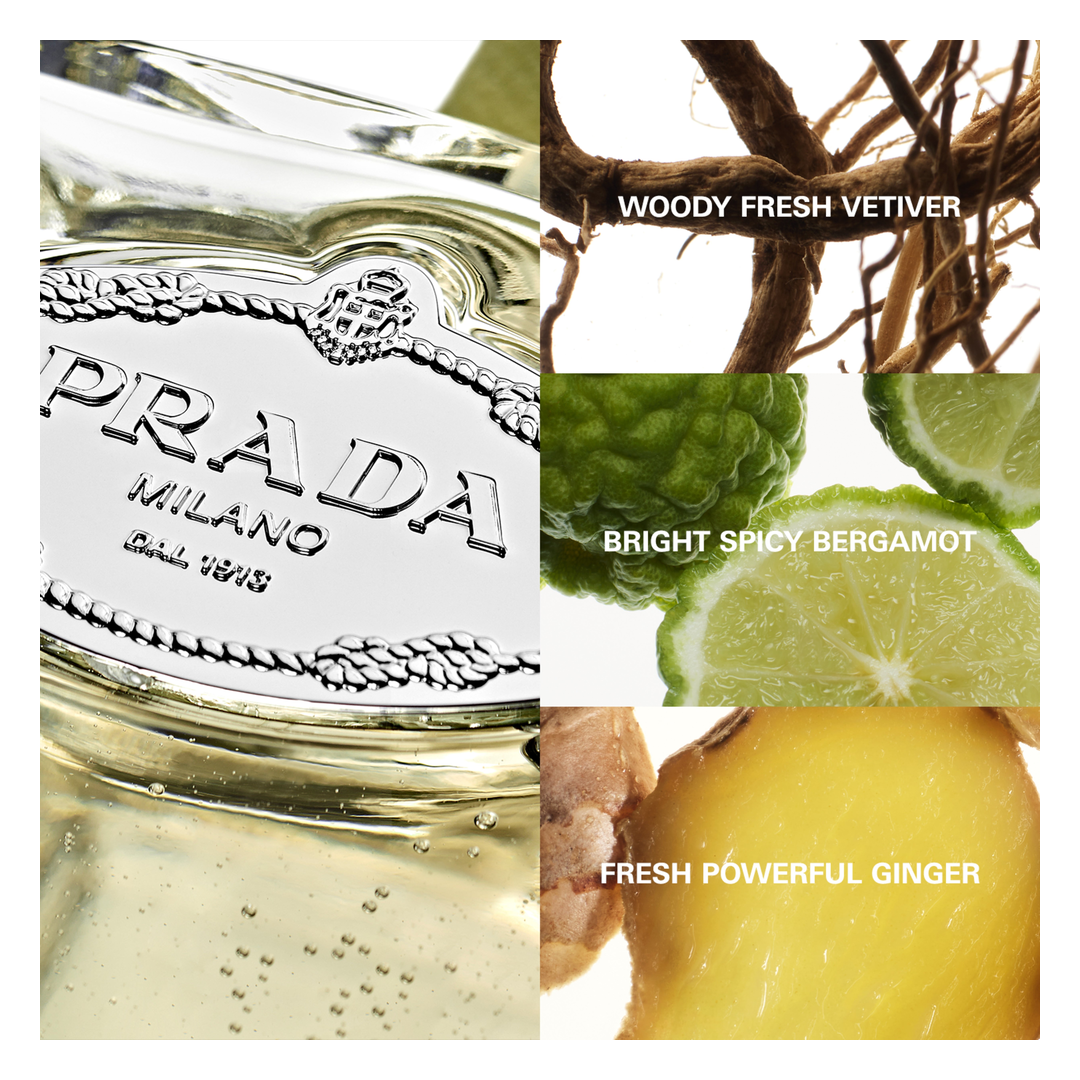 Crisp and energising, the Prada Les Infusions de Prada Vetiver Eau de Parfum immediately captures the refined quality of vetiver. An idyllic harmony of balance and softness, the Vetiver fragrance is an elegant and sophisticated addition to Prada's Les Infusions de Prada collection.