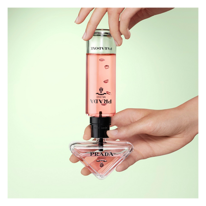 Prada Paradoxe is all about celebrating femininity in all of its forms as it encourages you to have the freedom to express yourself. The refill continues to embody your ability to be "never the same, always yourself" as it tops up your iconic Prada triangle bottle to continue the Prada story.