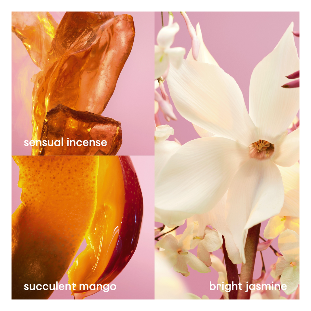 Exceptionally fresh jasmine, succulent mango and creamy incense leave the skin delicately scented throughout the day.