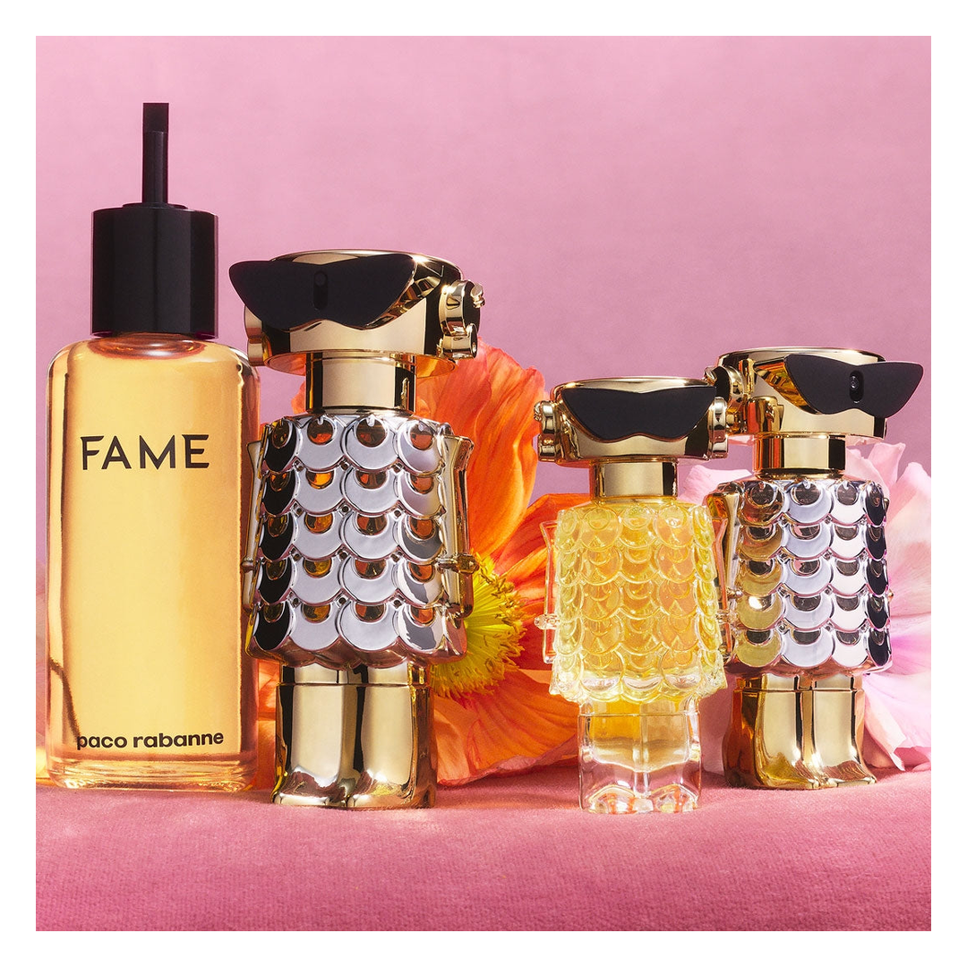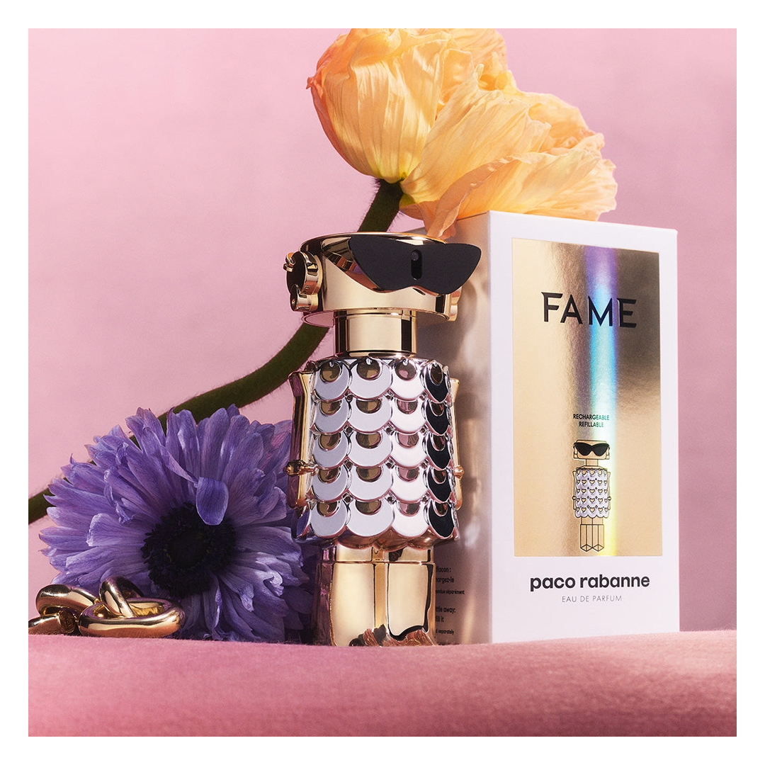 FAME Eau de Parfum captures the irresistible Parisian spirit of the Paco Rabanne woman, while paying tribute to a new era of femininity.