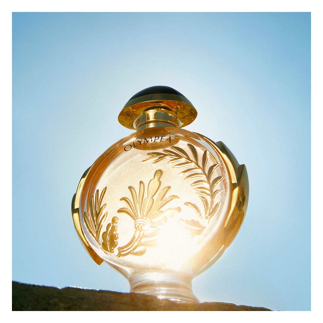 - Housed in the emblematic Olympea bottle, dressed in gold.