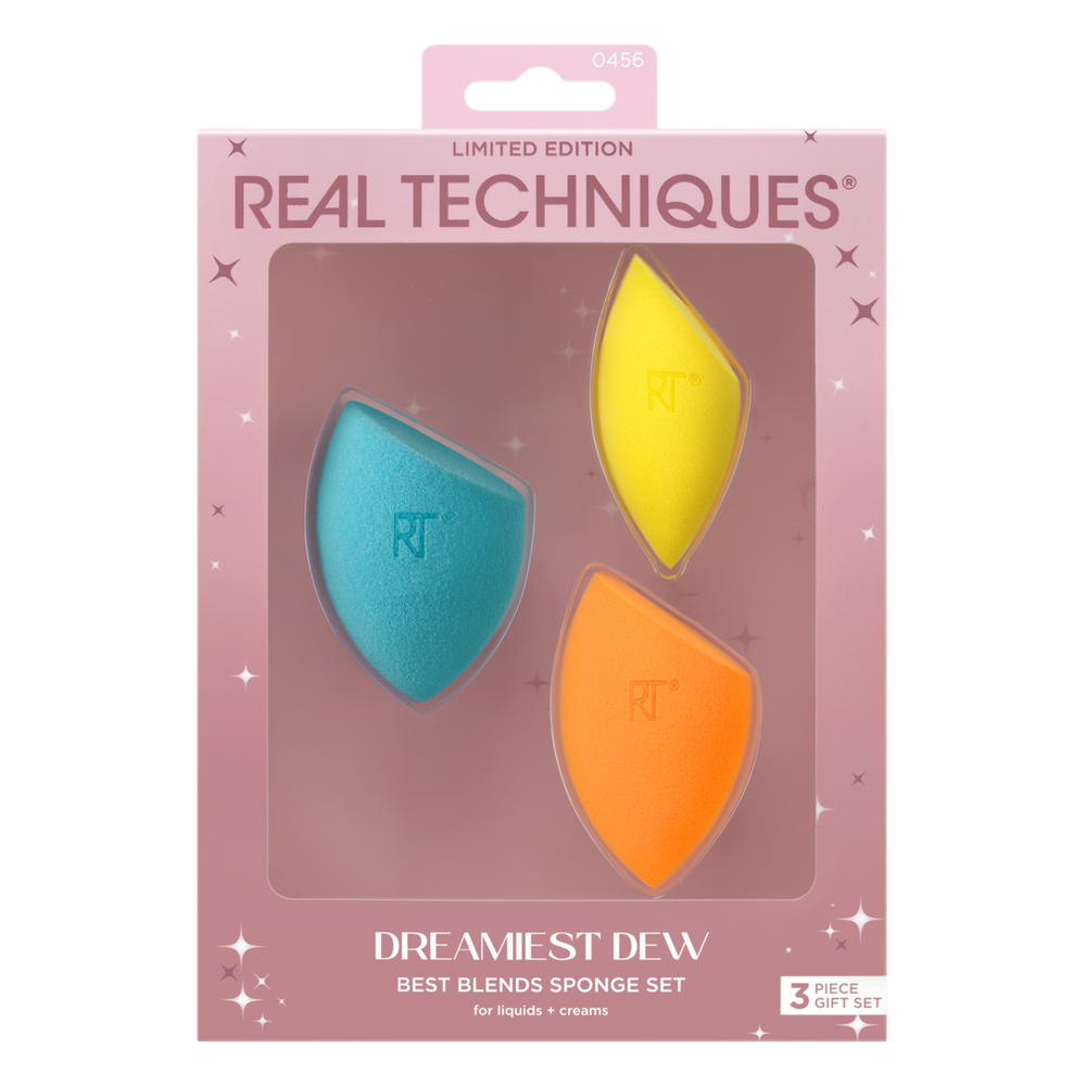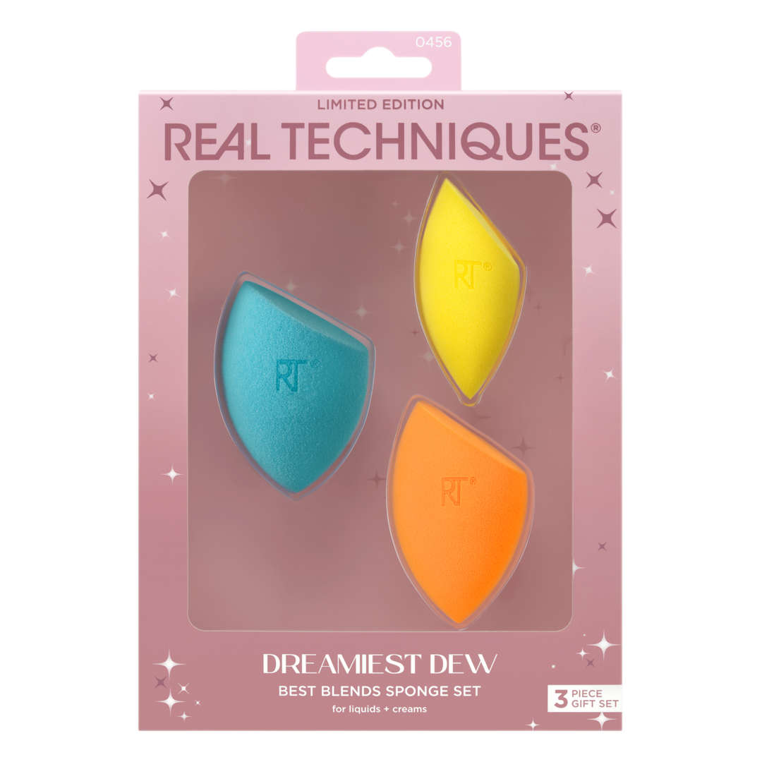 The Real Techniques Dreamiest Dew Sponge Set features 3 of our makeup sponges to blend, buff, and conceal for your perfect finish.