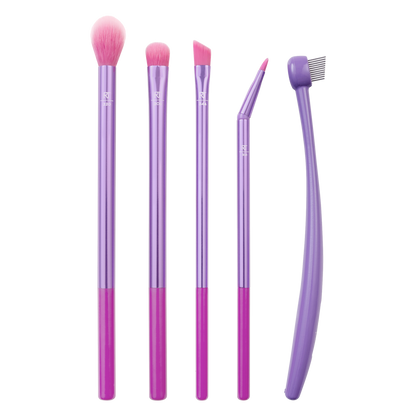 - Contains a selection of five brushes for applying flawless eyeshadow, separated lashes, liner and groomed brows.