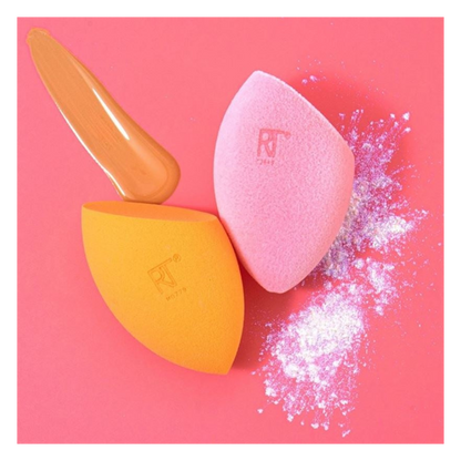 The Real Techniques Miracle Sponges are cult beauty tools - and there's a good reason as to why; both sponges feature the same distinct shape, which has been specifically crafted to mould to the contours of the face. The sponges are designed with various flat, pointed and rounded edges that can be used for precise makeup application, like contouring, highlighting or adding the final touches to a flawless base. The flexible foam technology of each sponge allows for expert blending all over the face, and both can be used wet for a glowy base or dry for a matte finish.