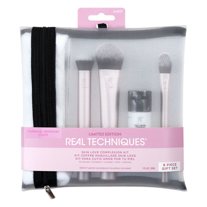 "Ensure flawless makeup application by keeping both your skin and your tools clean with the travel-friendly Real Techniques Skin Love Complexion Kit." - Hannah, Escentual Beauty Team.