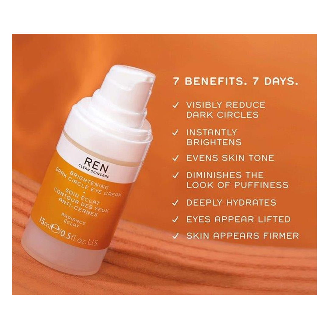 "Once cream, seven benefits; the REN Brightening Dark Circle Eye Cream tackles everything from dark circles and puffiness to loss of a elasticity and dehydration." - Darcey, Escentual Beauty Team.