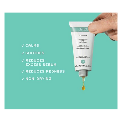 "Tackle blemishes head-on with the REN ClearCalm Non-Drying Spot Treatment, a vegan spot gel that reduces the appearance of your spots in just 12 hours." - Darcey, Escentual Beauty Team.