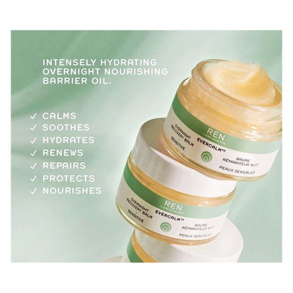 "Put your skin sensitivity worries to bed with the REN Evercalm Overnight Recovery Balm, a regenerative SOS balm that repairs and renews your dry, irritated skin while you sleep." - Darcey, Escentual Beauty Team.