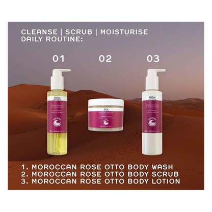 "Calm, soothe and hydrate your skin with the REN Moroccan Rose Otto Body Lotion, a fast-absorbing and lightweight moisturiser that leaves your skin delicately fragranced of rose." - Darcey, Escentual Beauty Team.