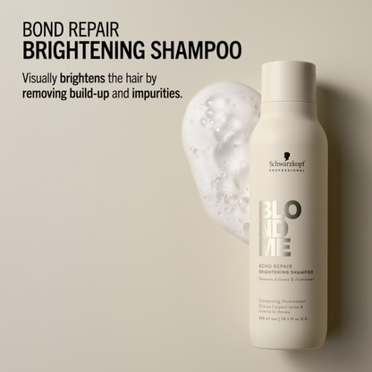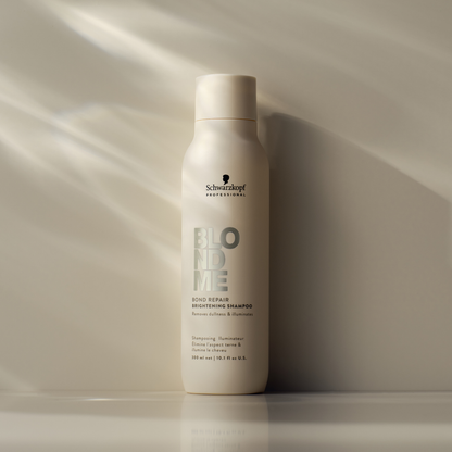 Cleansing and visually brightening blonde hair by removing build-up, impurities and environmental pollutants, BlondMe Bond Repair Brightening Shampoo with BOND REPAIR TECHNOLOGY helps to build inner hair bonds, repairing damage equivalent to two lightening services after just one use. The lightweight and moisturising formula, enriched with Almond Oil and White Tea, leaves the hair supple with a healthy-looking shine.