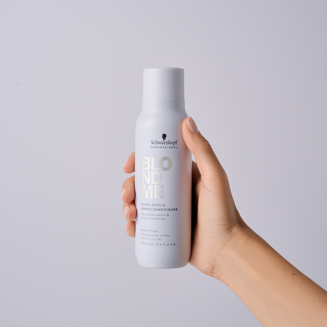Neutralising yellow undertones and helping to prevent brassiness, BlondMe Bond Repair Purple Conditioner with BOND REPAIR TECHNOLOGY intensively conditions the hair with a softening formula, instantly detangling from the lengths to ends and providing a silky feeling. Enriched with Almond Oil and Cornflower, the conditioner delivers targeted levels of cool pigments to maintain a fresh cool tone direction for improved blonde clarity, without changing the hair colour. Restoring radiance and shine, it strengthens the hair by building inner hair bonds, repairing damage equivalent to two lightening services after just one use.