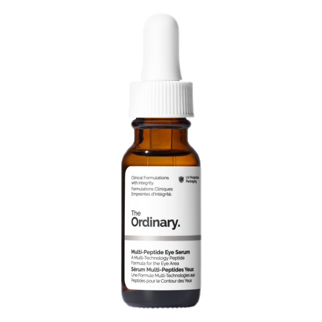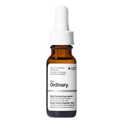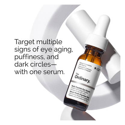 The Ordinary The Multi-Peptide Eye Serum is a water-based formula designed to target the appearance of common signs of aging around the eye area. This serum utilises multiple peptide technologies to help reduce the appearance of crow's feet and under eye wrinkles, eye bags, puffiness, and dark circles, leaving the eye area looking brighter, smoother and less puffy.