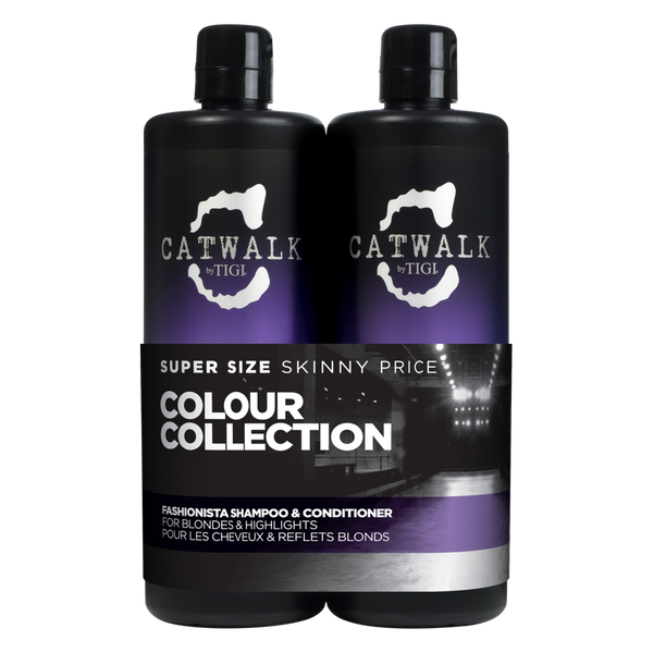 Banish brassy tones with the TIGI Catwalk Fashionista Shampoo and Conditioner Tween Duo, the perfect hair-care regime for blonde, highlighted and non-pigmented hair.