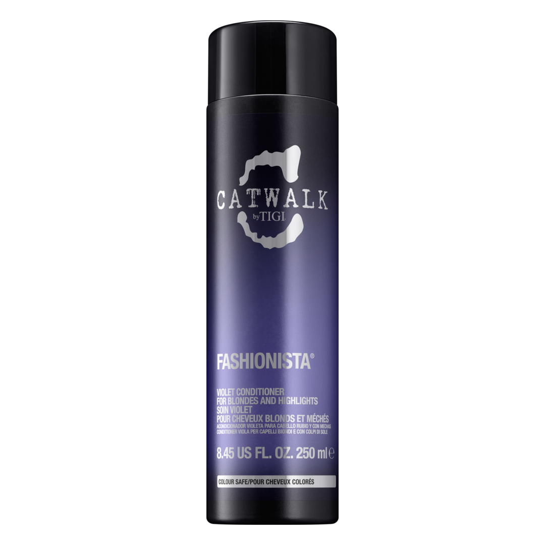 Captivate your colour with the Tigi Catwalk Fashionista Violet Conditioner, a brightening hydrator to banish brass from cool-toned hair.