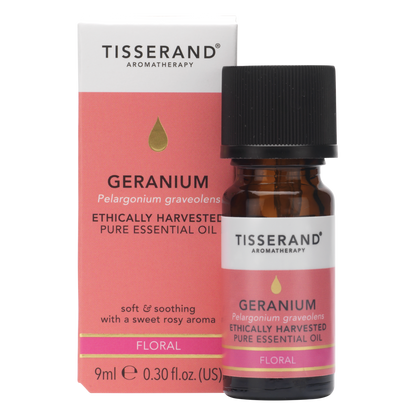 Tisserand Aromatherapy Geranium Pure Essential Oil is an ethically harvested lightweight oil with a sweet floral aroma, ideal for massage.
