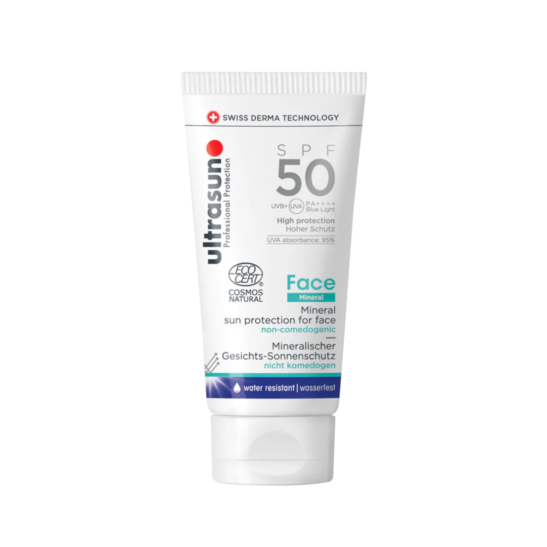 Advanced combination of almost invisible broad spectrum SPF50 mineral protection with antioxidants. Titanium Dioxide for blue light protection and low molecular hyaluronic acid to help restore optimal moisture levels whilst also helping to reduce the appearance of sun induced ageing. Features incredibly fast absorbing, lightweight and non greasy textures. Ideal for ultra sensitive skin.