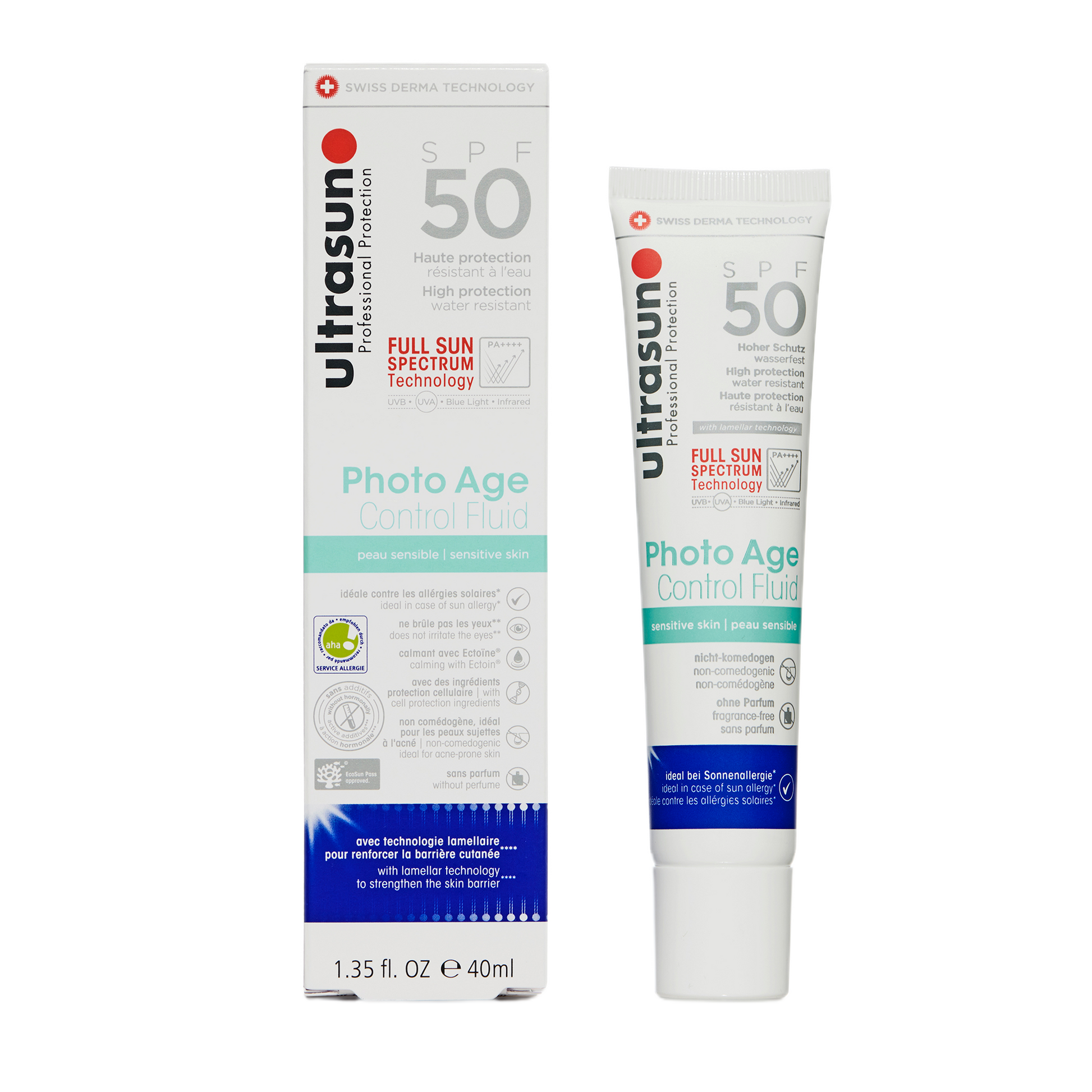 Ultrasun Photo Age Control Fluid SPF50 delivers full solar sun protection from the sun’s harmful rays in our lightest formula yet. Using our unique formulas with the addition of Ectoin, a natural molecule that helps shield cell membranes from oxidative stress, inflammation and damage while also strengthening the skin barrier, contributing to a reduction in sun induced skin ageing.