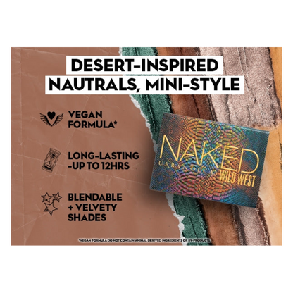 Naked Wild West rides again. You asked & we delivered. A limited editon palette with six of the most wanted Naked Wild West shades, with the perfect assortment of matte & shimmer finishes delivering up to 12 hours of desert inspired eyeshadow looks.