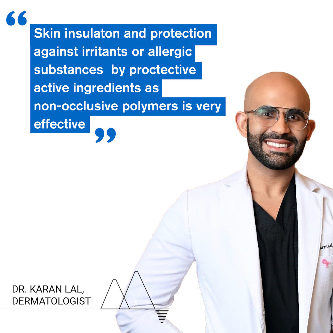 The combination of two polymers provides an insulating action on the skin's surface to prevent future aggressions.