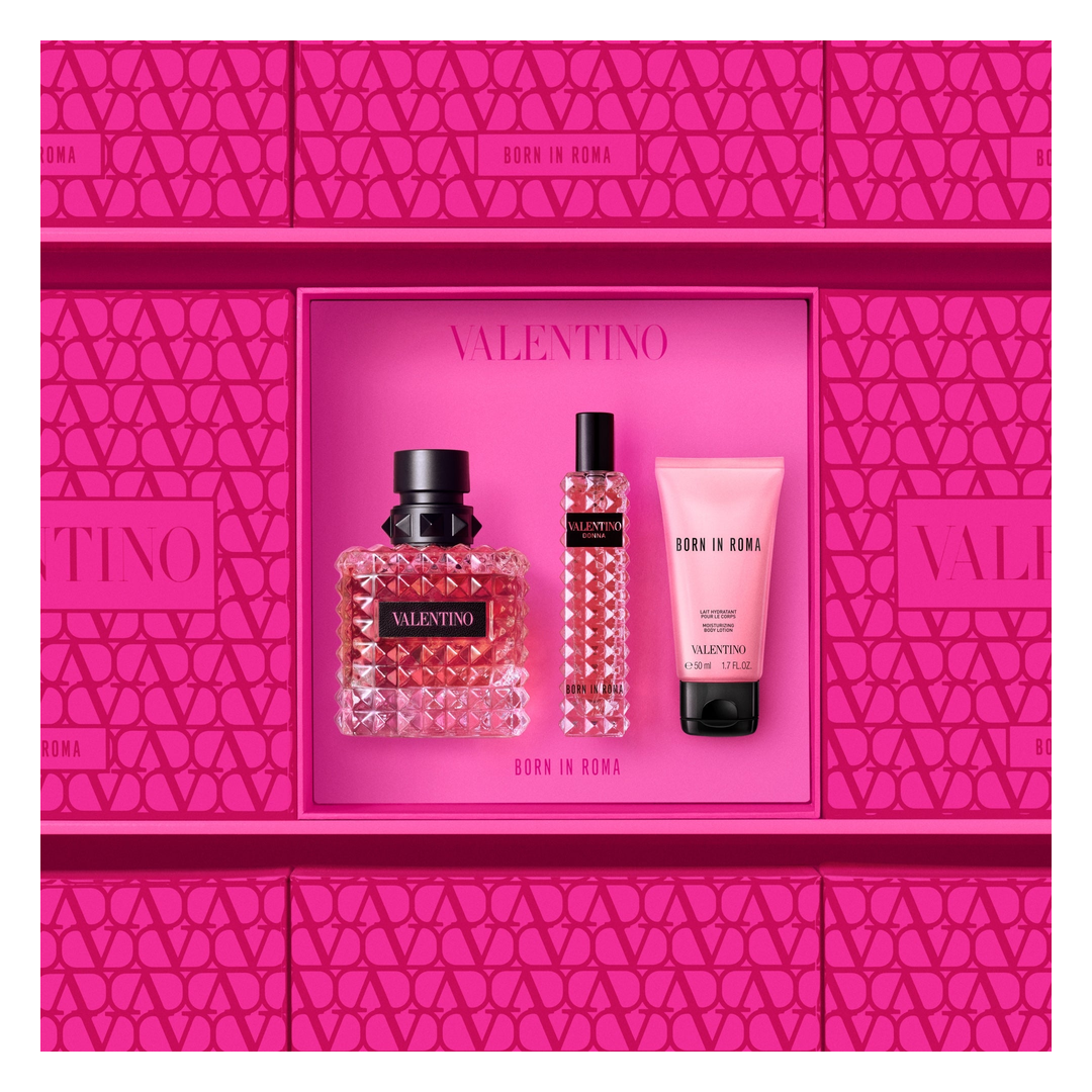 Born In Roma Donna eau de parfum is an ode to self-celebration. Edgy yet feminine, this modern floral woody fragrance rewrites the perfume rules. Luxurious Jasmine notes and Vanilla Bourbon are blended with a sensuous Woody base to create a captivating perfume that reconstructs fragrance classicism with an edgy twist, reminiscent of Rome's street culture. The bottle is encased in the armour of Valentino’s iconic stud, a fashion signature of Valentino Couture inspired by Roman architecture and representing a rebellious new era for high fashion.