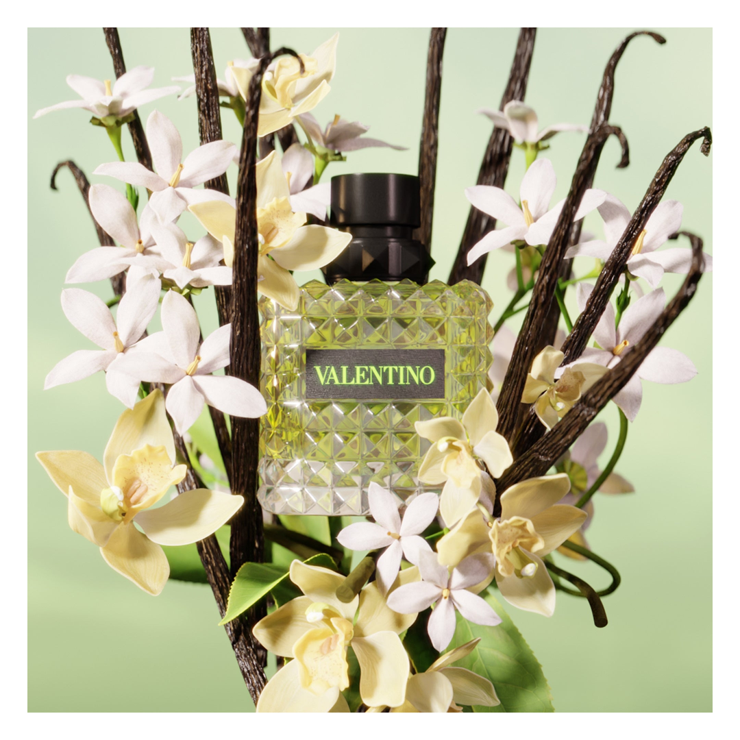 Born In Roma Green Stravaganza Donna is a floral-ambery woody fragrance, crafted as an extravagant blend of sensual Lapsang Souchong tea accord, opulent jasmine absolute and warm vanilla extract.