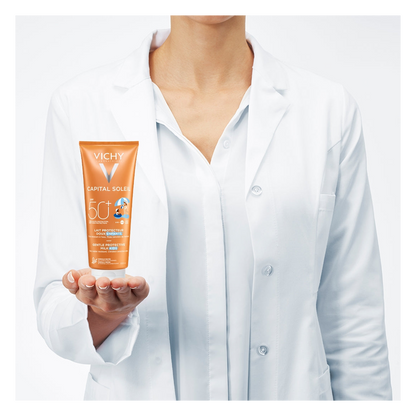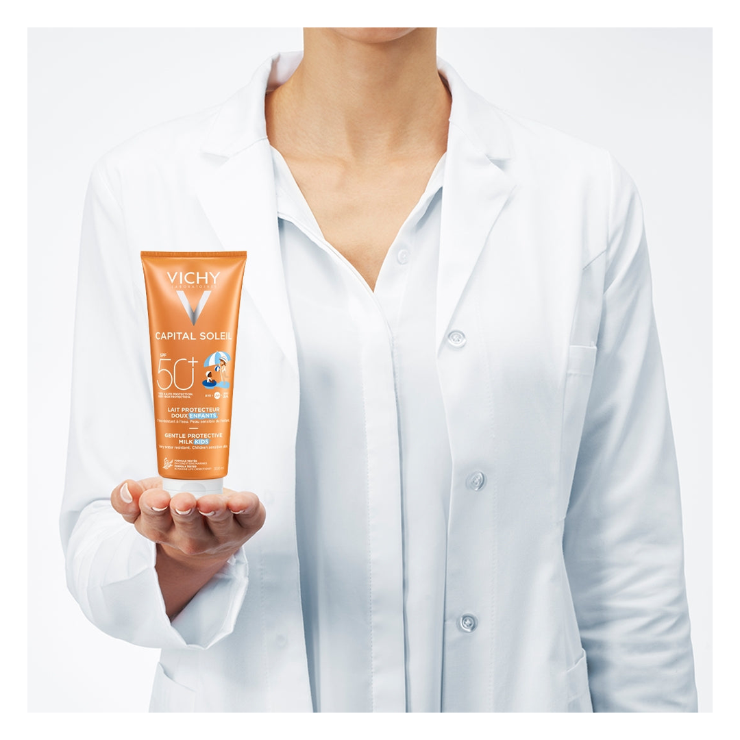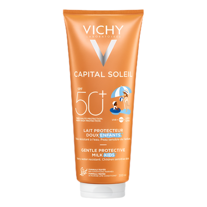 Protect young skin from UV rays with the Vichy Capital Soleil Gentle Protective Milk SPF50 for children.